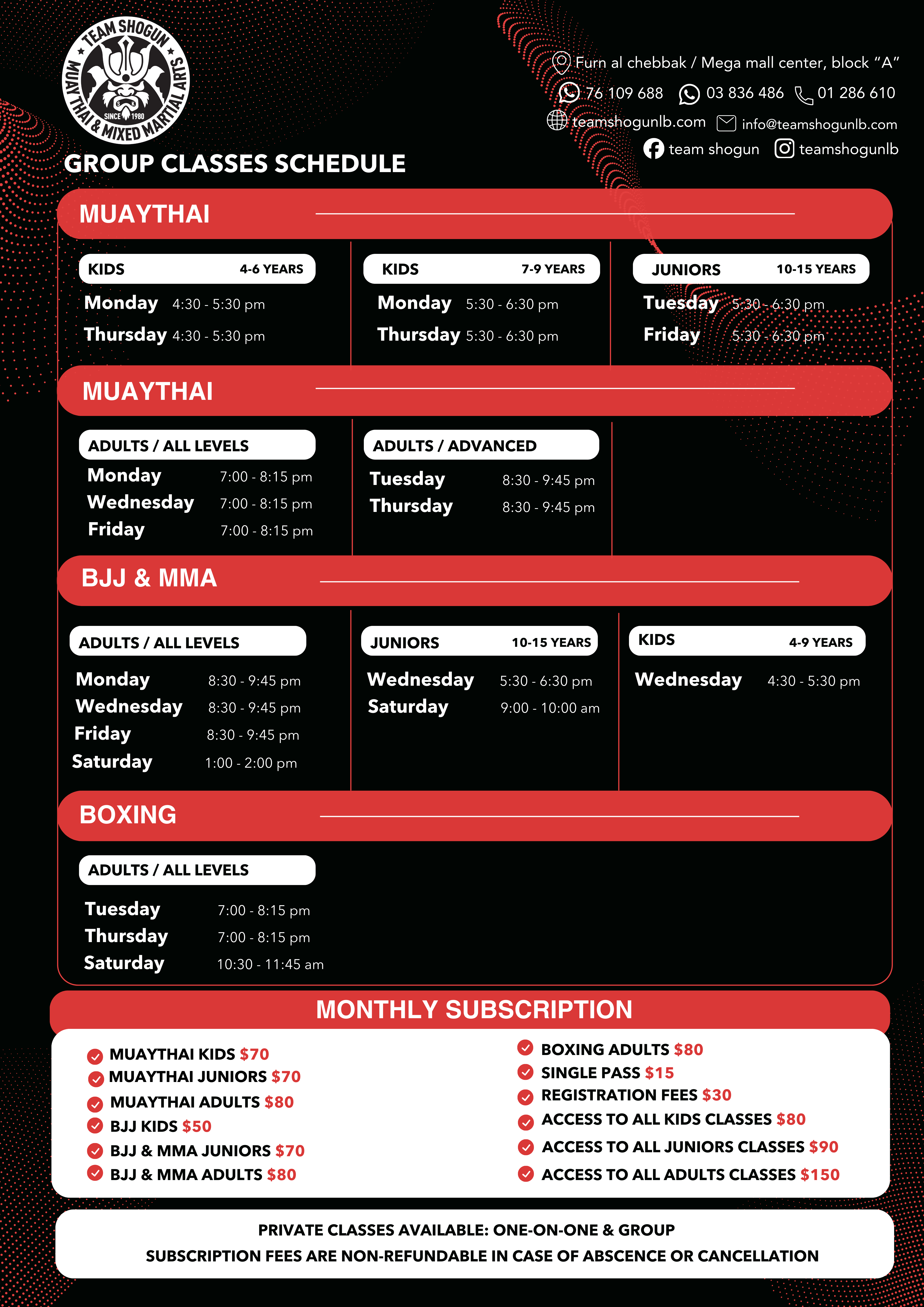 Class schedule